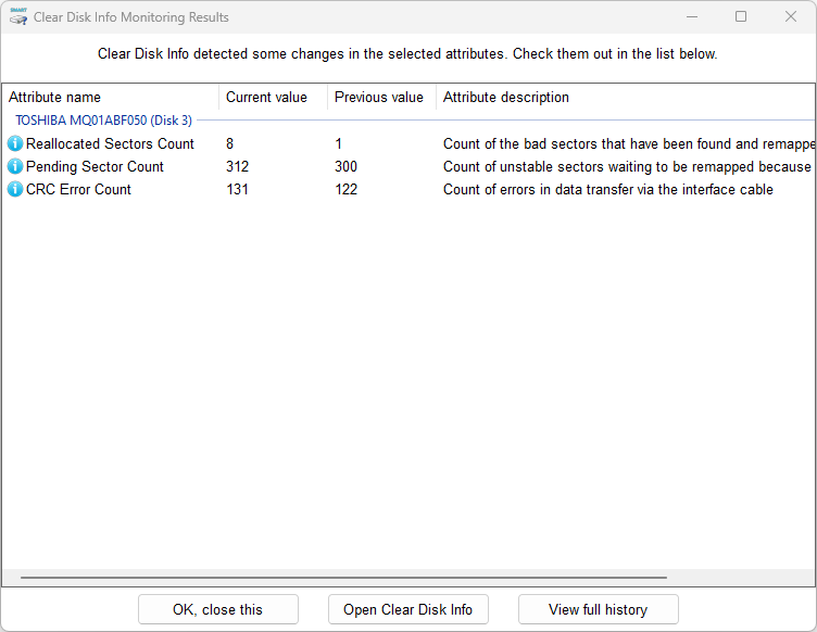 Would you like Clear Disk Info to monitor the chages in some attributes and notify you about important ones? Well, this is now possible.